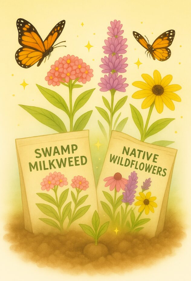 The Magic Meadow Bundle is your invitation to grow a vibrant pollinator patch filled with color, life, and purpose. Each bundle combines Swamp Milkweed seeds, the essential host plant for monarch caterpillars, with a diverse mix of native wildflowers that provide nectar for butterflies, bees, and hummingbirds all season long.